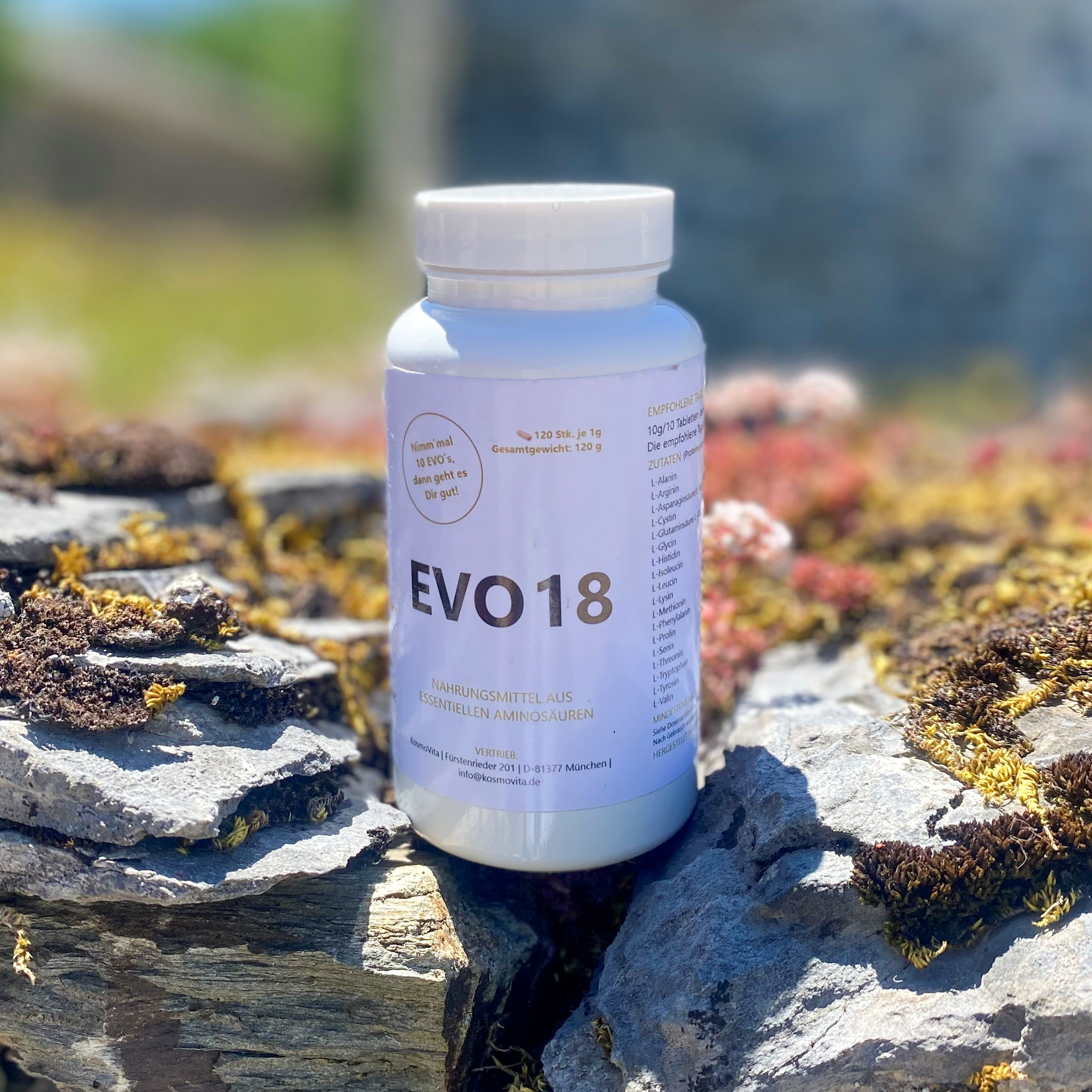 Aminosäuren werden die Bausteine des Lebens genannt. Im Körper finden sekündlich mehrere Tausend Umbauprozesse statt, wofür der Körper „Baustoffe“, also Aminosäuren benötigt. Von den 20 im Menschen befindlichen Aminosäuren sind die acht in EVO enthaltenen essentiell. Um diese Auf- und Umbauprozesse optimal abschließen zu können müssen die acht essentiellen Aminosäuren gleichzeitig in der für den Menschen optimalen Zusammensetzung zur Verfügung stehen. Genau dieses optimale Verhältnis liefert EVO dem Körper. Aufgrund dieser optimalen Kombination der essentiellen Aminosäuren kann körpereigenes Protein optimal aufgebaut werden. Jede andere Zusammensetzung verringert den „Wirkungsgrad“ und lässt Stickstoffabfall produzieren, der aufwendig über Leber und Nieren entgiftet werden muss. Dieser Vorgang ist für die betreffenden Organe natürlich belastend.